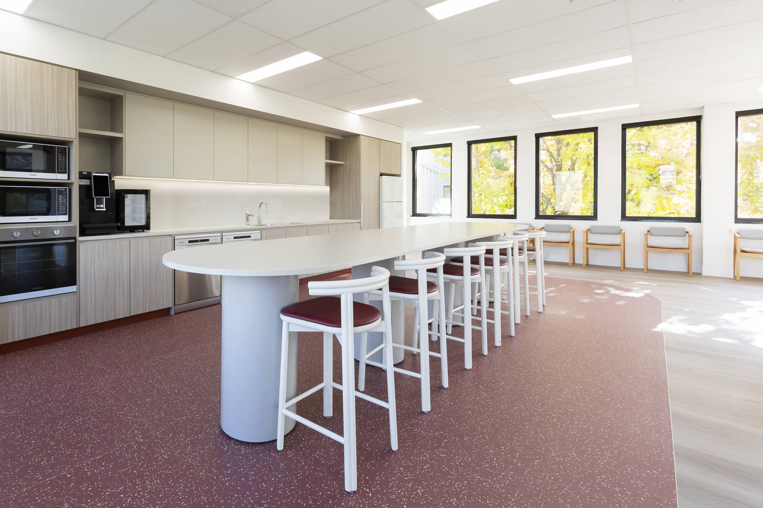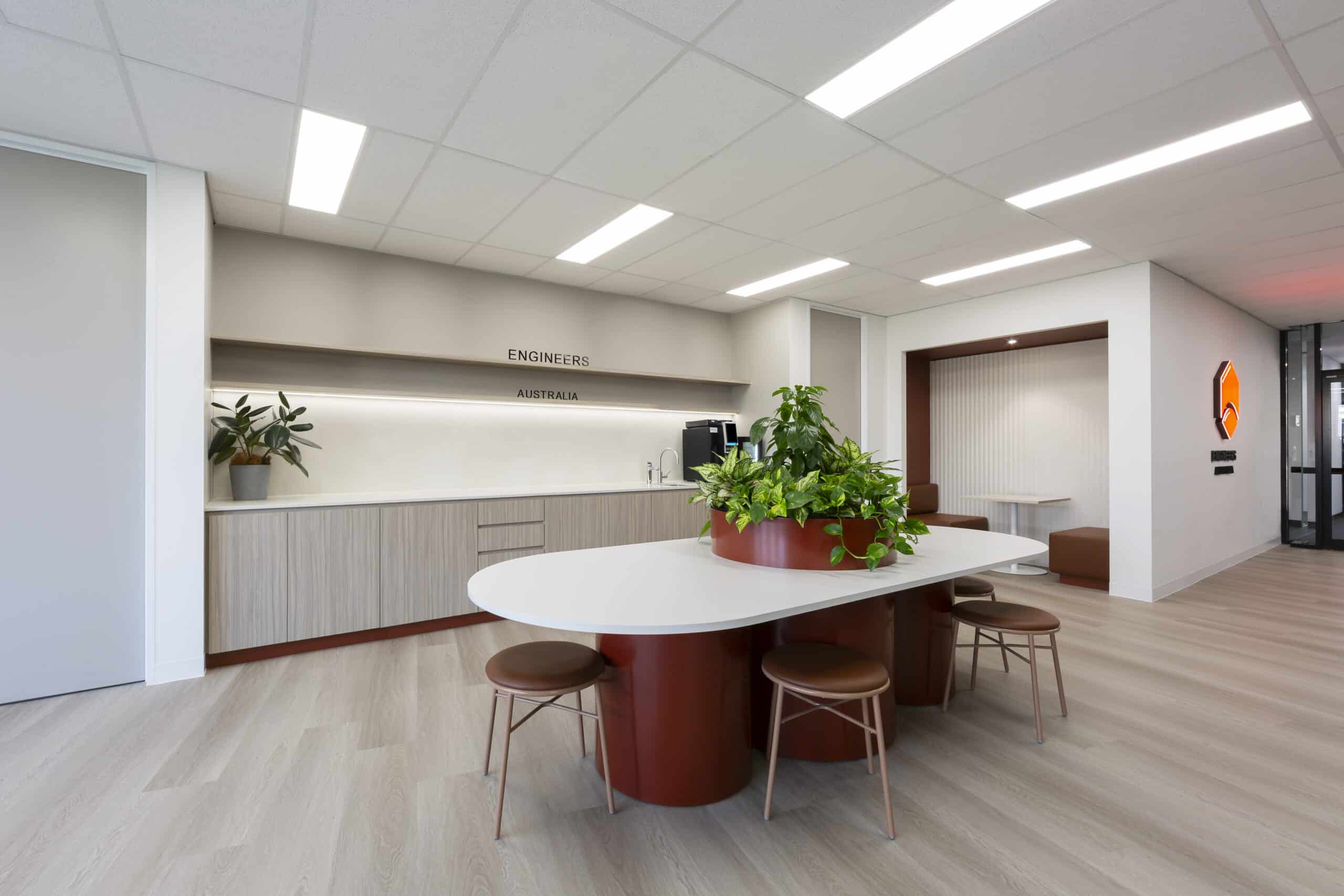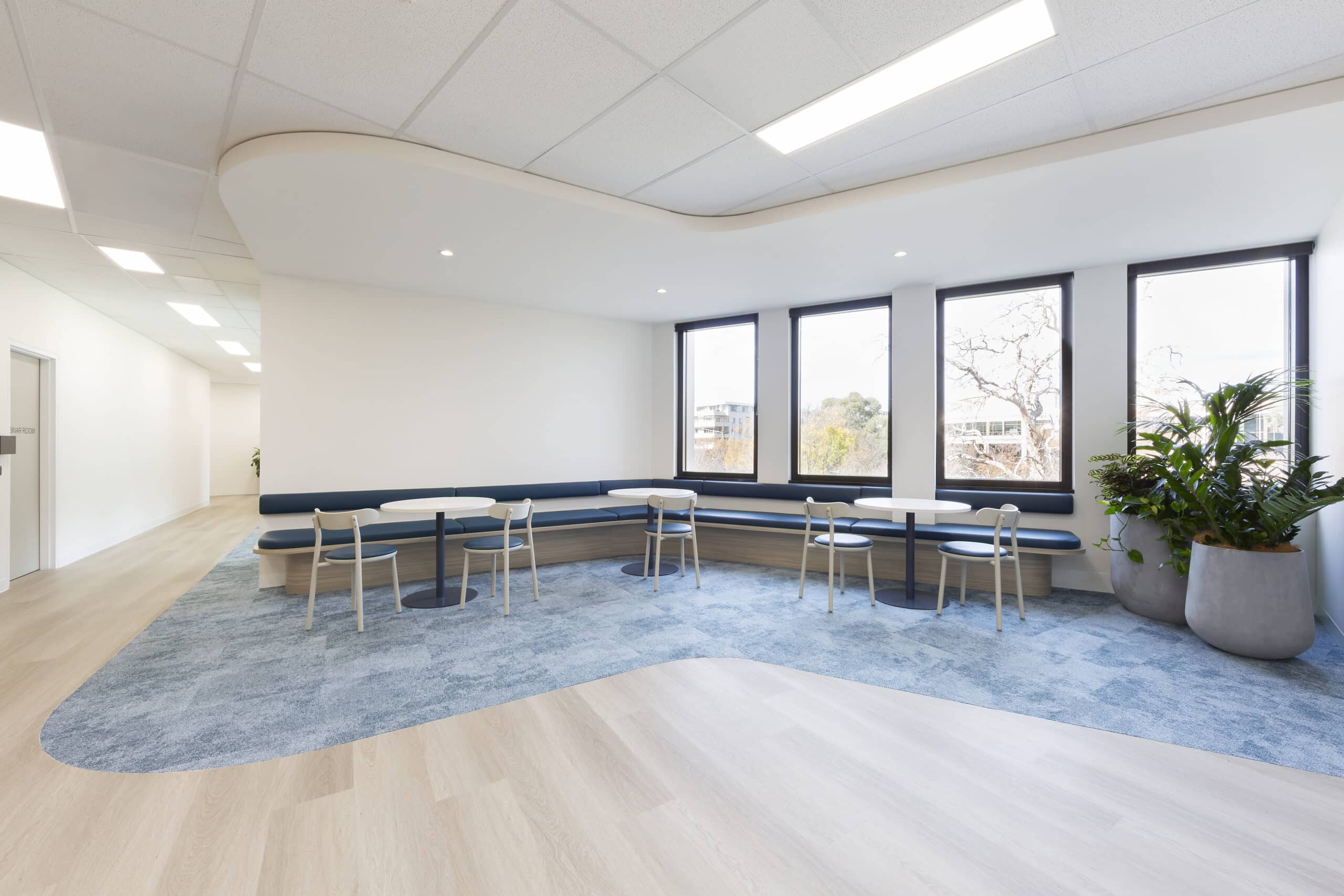 Strategic reuse of existing elements, such as ceilings and partitions, helped reduce waste and embodied carbon, supporting a more sustainable fit-out in Canberra.